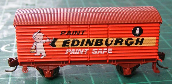 Body roof in Badger Modelflex/Accuflex Maroon Tuscan Oxide Red (older VR brown/red), side in the colour I use for AN green (Badger Modelflex/Accuflex Burlington Northern Green with a dash of black).